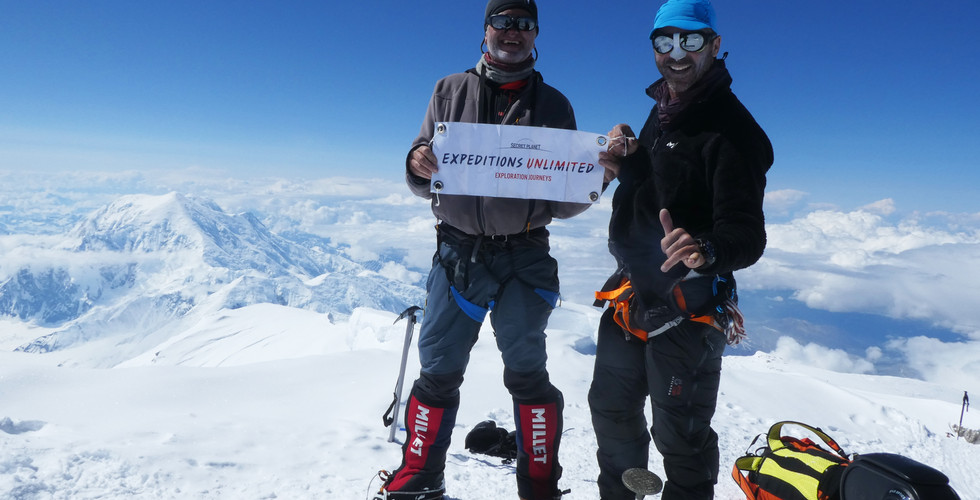 Le Denali désigne le point culminant de d'Amérique du Nord. Situé au centre de l'Alaska, aux États-Unis, il culmine à 6 190 mètres d'altitude. L’ascension du Denali initialement prévue en mai 2019 a été reportée en juin après le mariage de mon fils Tom. Nous arrivons en Alaska le 5 juin et le lendemain nous sommes déjà au camp de base. Nous débutons l’ascension immédiatement avec des conditions météorologiques exceptionnelles. Nous allons profiter de cette fenêtre météo à fond sur un rythme très soutenu, on ne s’arrêtera pas au camp 1 ni au camp 2 seulement une nuit au camp 3 puis nous arrivons au camp 4 (ou camp médical) pour s’acclimater un peu pendant 4 jours et enfin le camp 5 à 5 300 mètres d'altitude. Enfin nous arrivons au sommet le 13 juin, seulement 7 jours après le début de l’ascension. Au sommet, il n’y a aucun vent, rien d’autre que le calme et le soleil sur le toit de l’Amérique du Nord.